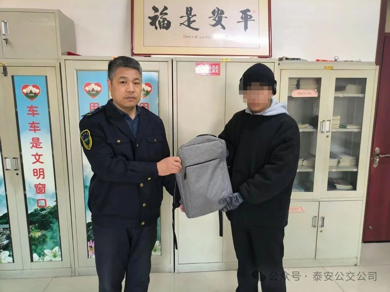 據(jù)了解,齊同學(xué)從濟南來泰安上學(xué),當天晚上從泰山火車站乘坐39路公交車前往學(xué)校。乘車途中,齊同學(xué)因看手機,下車時不慎將裝有筆記本電腦和現(xiàn)金的背包遺落在車廂內(nèi),直到抵達學(xué)校后才發(fā)現(xiàn)背包丟失。心急如焚的齊同學(xué)立刻返回下車的站點尋找,但公交車早已駛離;他又匆忙趕回乘車的泰山火車站公交樞紐站,依舊沒有看到剛才乘坐的那輛公交車的身影。情急之下,齊同學(xué)向樞紐站里的一位公交駕駛員詢問了39路所屬分公司的聯(lián)系電話,隨即撥通電話向分公司工作人員求助。