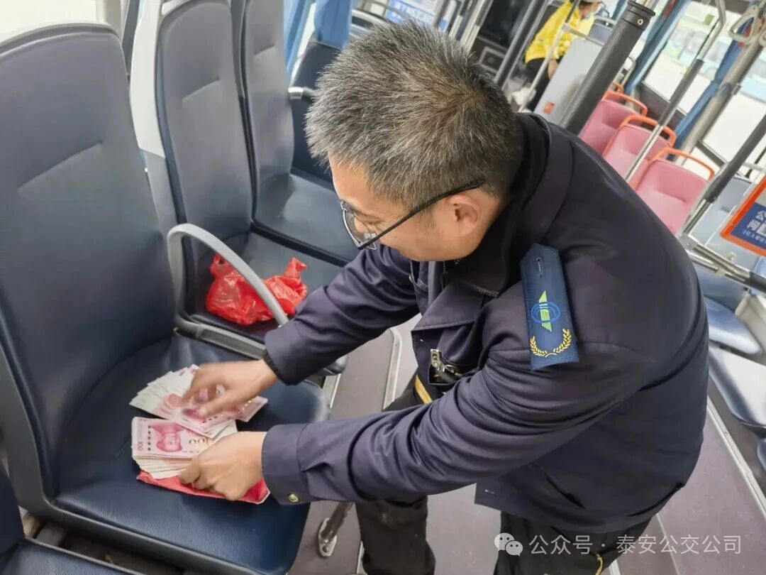 當(dāng)天下午,駕駛員公鵬如往常一般,駕駛魯J08381D號公交車從山東第一醫(yī)科大學(xué)老校站出發(fā),駛向南高新區(qū)公交停車場。14時02分,車輛行至泰山火車站廣場站點(diǎn)時,一名剛上車的乘客在后排座位發(fā)現(xiàn)一個不起眼的紅色塑料袋,打開后竟看到一沓厚厚的百元現(xiàn)金。