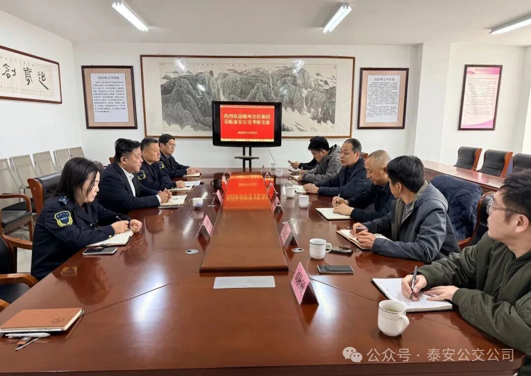 11月25日,德州市交投集團黨委副書記、總經(jīng)理劉俊勇,德州市交投公交集團黨委副書記、總經(jīng)理孫培功帶隊來泰安公交考察交流。泰安公交黨委書記、董事長、總經(jīng)理徐躍,黨委委員、董事、副經(jīng)理徐方華及相關(guān)部門負責(zé)人參加座談交流。